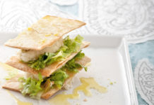Millefoglie di pane carasau con baccalà mantecato ai porri