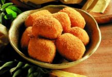 Mini cannelloni verdi con baccalà mantecato e crema di gamberi