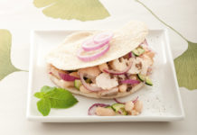 Pita con pesce spada marinato e insalata di fagioli cannelliini