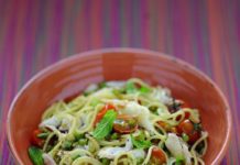 Spaghettini con ragù di orata e ortaggi alla menta