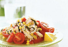 Insalata di pomodori e cozze con salsa alla maggiorana
