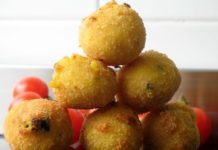 Piccoli arancini con riso alla curcuma, zucchine e pomodorini
