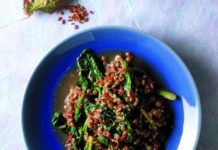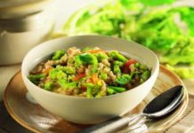 Scrigni di lattuga ripieni di riso rosso e fagioli neri