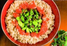 Riso basmati con verdure primaverili in salsa di pomodoro