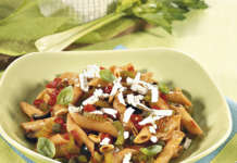 Pennette al ragù di sedano, olive e pinoli