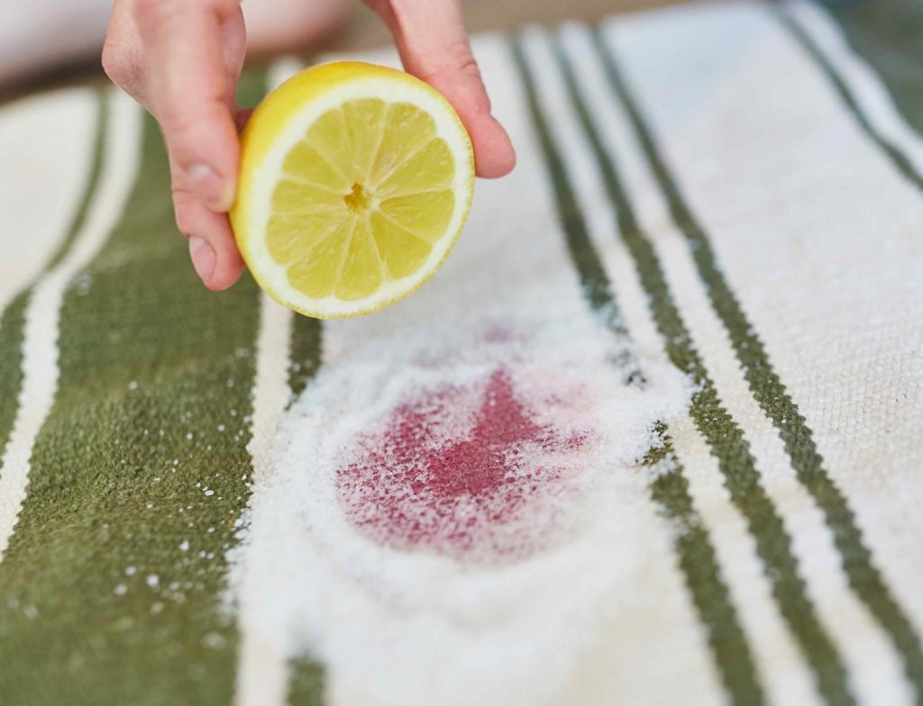 Il succo di limone può essere utile per smacchiare i tessuti: utilizzatelo direttamente su una macchia fresca e poi sciacquate. Nel caso di macchie già asciutte, mettete in ammollo il capo e aggiungete il succo di mezzo limone e 1 cucchiaino di sale. Raddoppiate le dosi se utilizzate più di un litro d’acqua. Dopo circa mezz’ora, strofinate sulla macchia per favorirne la rimozione. Via libera sui capi bianchi; sui tessuti colorati conviene testare prima la resistenza dei colori su un angolo.