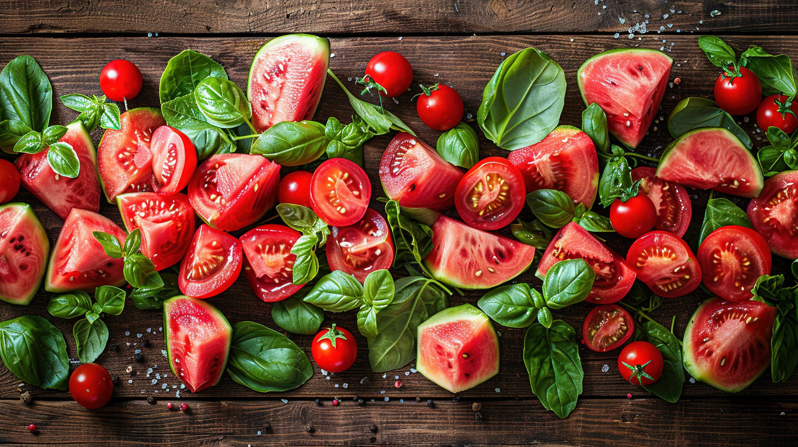 INSALATA DI FETA alla menta con anguria, melone e cetriolo
