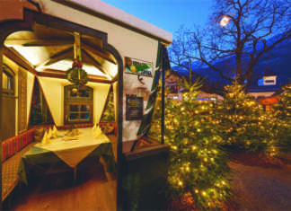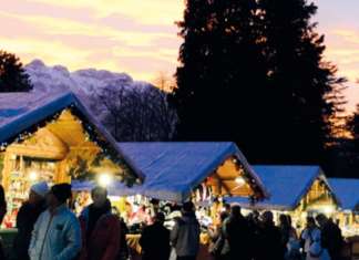 34 casette di legno, una grande baita tirolese con cibi tipici e due baite più piccole per la degustazione di birre e dolci tirolesi