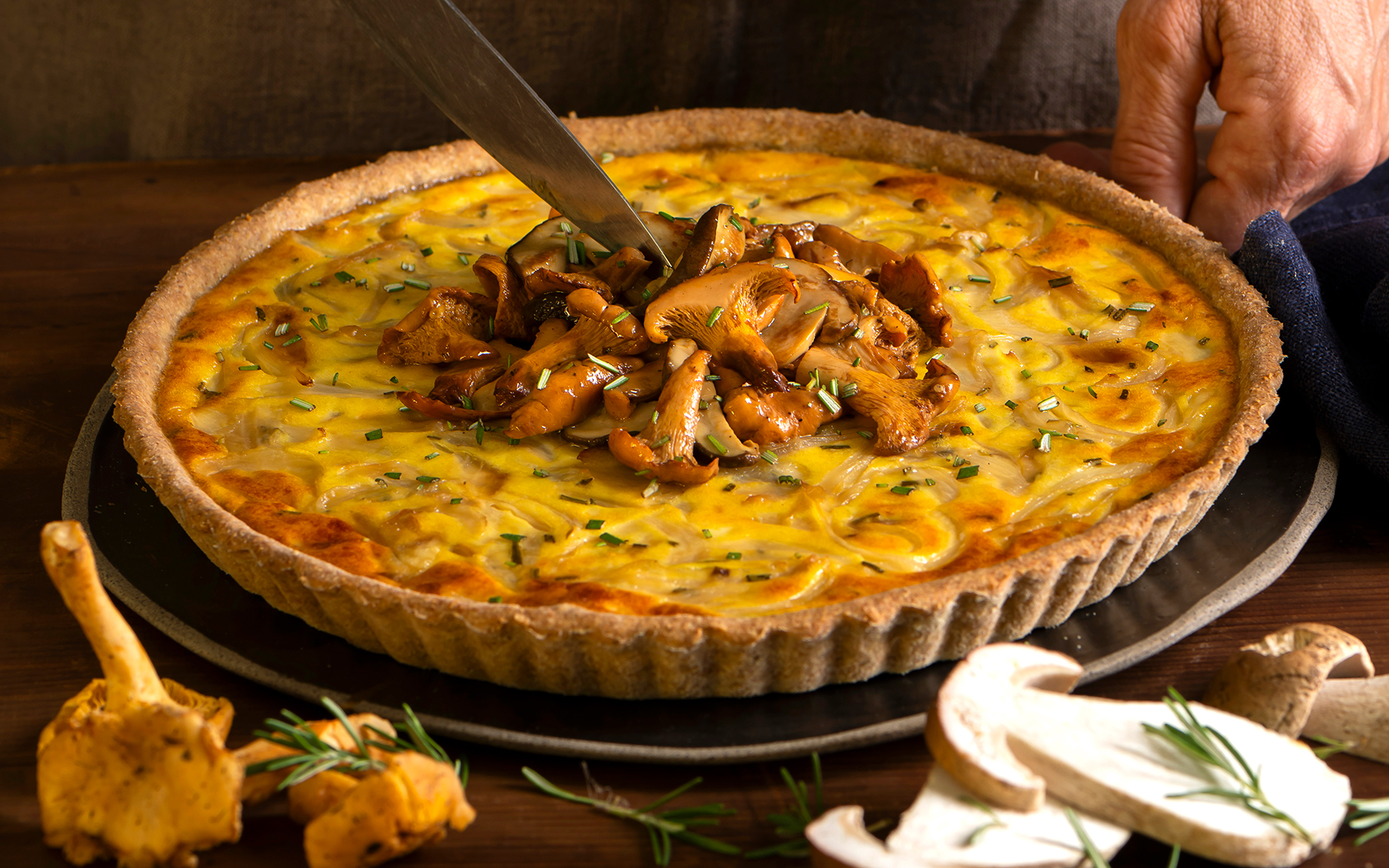 La quiche, invece, nasce in un contesto più definito: la Lorena, regione di confine tra mondo francese e area germanica. Il nome stesso deriva da Kuchen, torta. La sua forma più celebre, la Quiche Lorraine, mostra già il suo carattere: una base di pasta brisée e un ripieno costruito attorno a un elemento centrale, il composto di uova e panna. Questa miscela, versata sugli altri ingredienti, crea una consistenza compatta e cremosa, quasi vellutata, che distingue la quiche da molte torte salate italiane. Qui la struttura è più codificata, il risultato più uniforme: la quiche ha una personalità elegante, ordinata, meno “istintiva”.