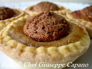 - Mescolare la marmellata con 4 amaretti sbriciolati finemente e un poco di cannella macinata, riempire le tartellette dopo avere bucato il fondo della frolla.