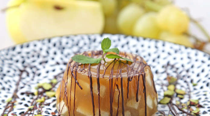 Un ottimo dessert che vive della freschezza e dolcezza di mele e uva senza alcun dolcificante in più per nulla necessario. A completare un poco di cioccolato fondente, un leggero e soave sottofondo di menta fresca e i croccanti pistacchi di Bronte!