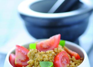 Anello di grano allo zafferano e merluzzo con crema di fagiolini all’erba cipollina