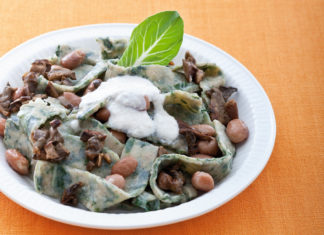 Nastri alle bietole con fagioli borlotti in salsa bianca di ricotta