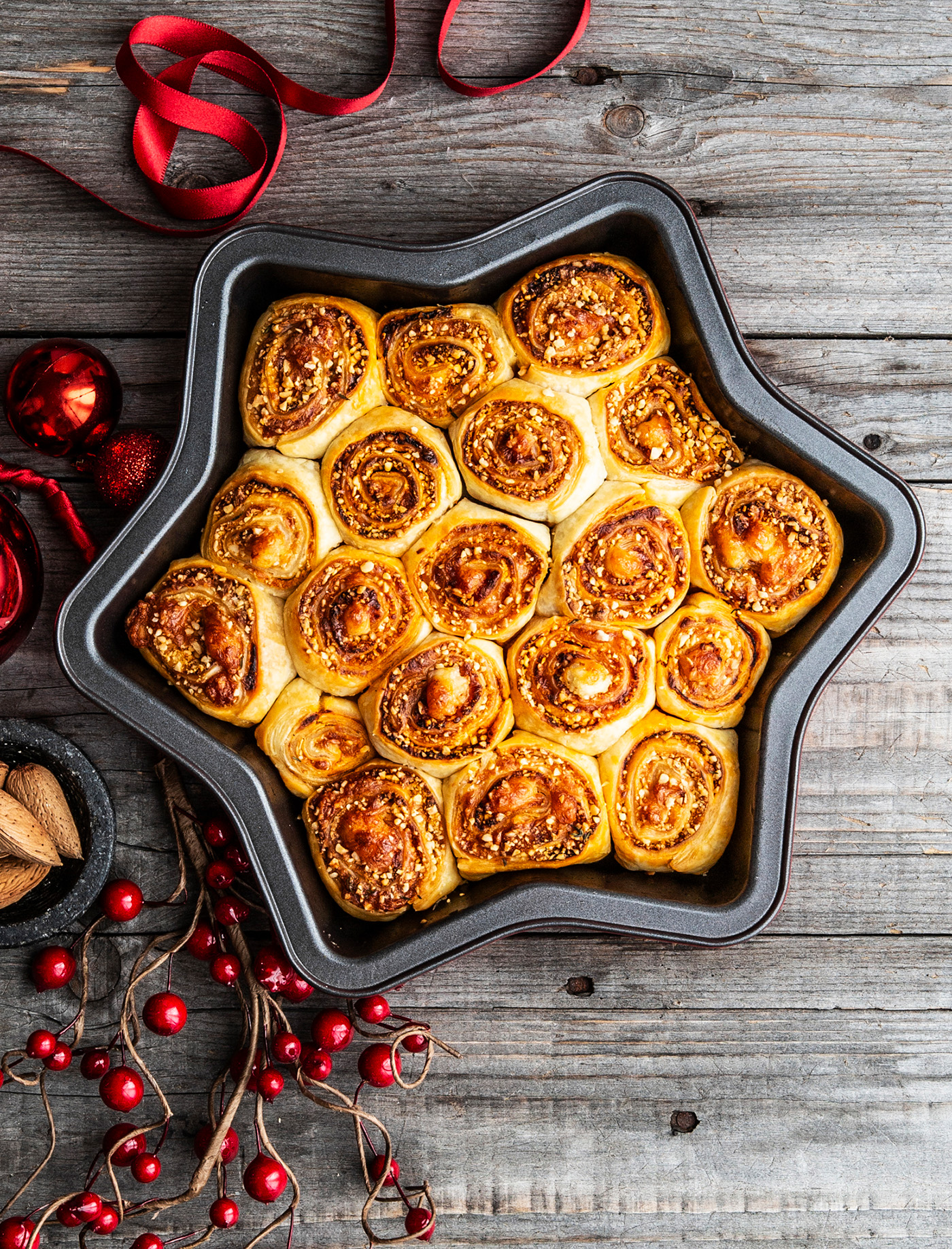 Stella di sfoglia natalizia con scamorza e mandorle