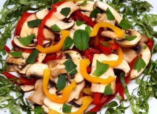 Insalatina di peperoni grigliati e funghi alla menta