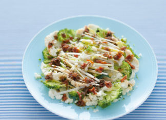 Bavarese di cime di rapa con insalata di orecchiette, pomodori secchi e verdure