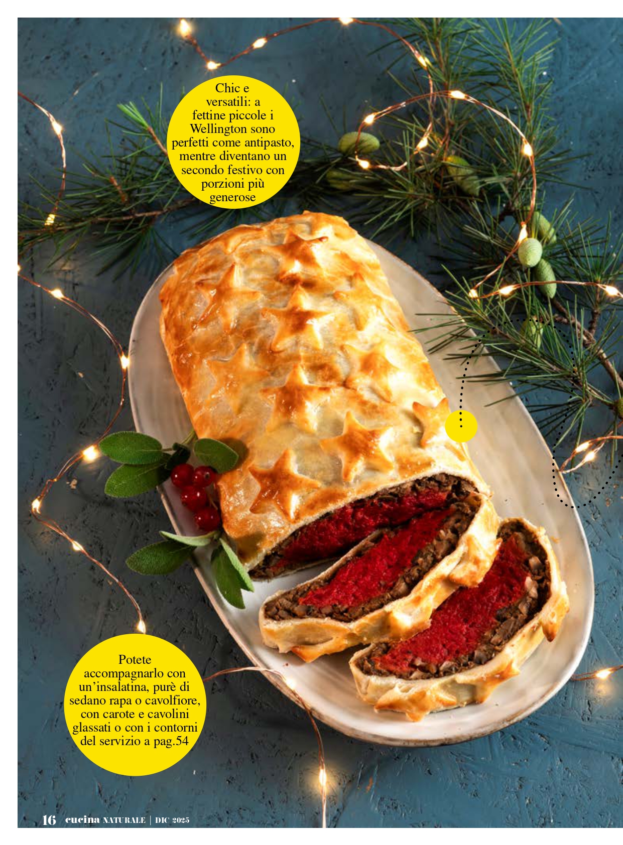 Tutto sommato la felicità è una piccola cosa, scriveva Trilussa. Come rallentare, e adesso è il momento perfetto. Il nuovo numero di Cucina Naturale di dicembre parla di questo: del tempo che in questo mese si accorcia o si dilata, e delle tavole, imbandite, che ci ricordano che le cose belle vanno preparate con cura. Questo mese vi portiamo in un viaggio tra sapori che parlano di convivialità, che ci invitano a stare insieme, e che scaldano, con piatti che sanno essere equilibrati ma anche irresistibili. Così, se la melagrana, il frutto simbolo del Natale, è l'ingrediente del mese, anche se a dicembre la sua stagione volge ormai al termine, la variante veg del Wellington è un antipasto festivo perfetto che stupirà tutti. E che dire del buono nascosto dei dolci di Natale? Panettone, pandoro, torrone, crema al mascarpone... sono buonissimi al palato ma come sono dal punto di vista nutrizionale? Sgarrare con consapevolezza, questo il diktat per un mese che, tra deliziosi spiedini di alberelli natalizi e gustosi ravioli di Natale a forma di stella, ci ricorda una regola fondamentale: in questo periodo è ammesso sgarrare per piacere, ma non per obbligo, né per inerzia. Mangiamo solo ciò di cui abbiamo davvero voglia! Vi aspettiamo in edicola!