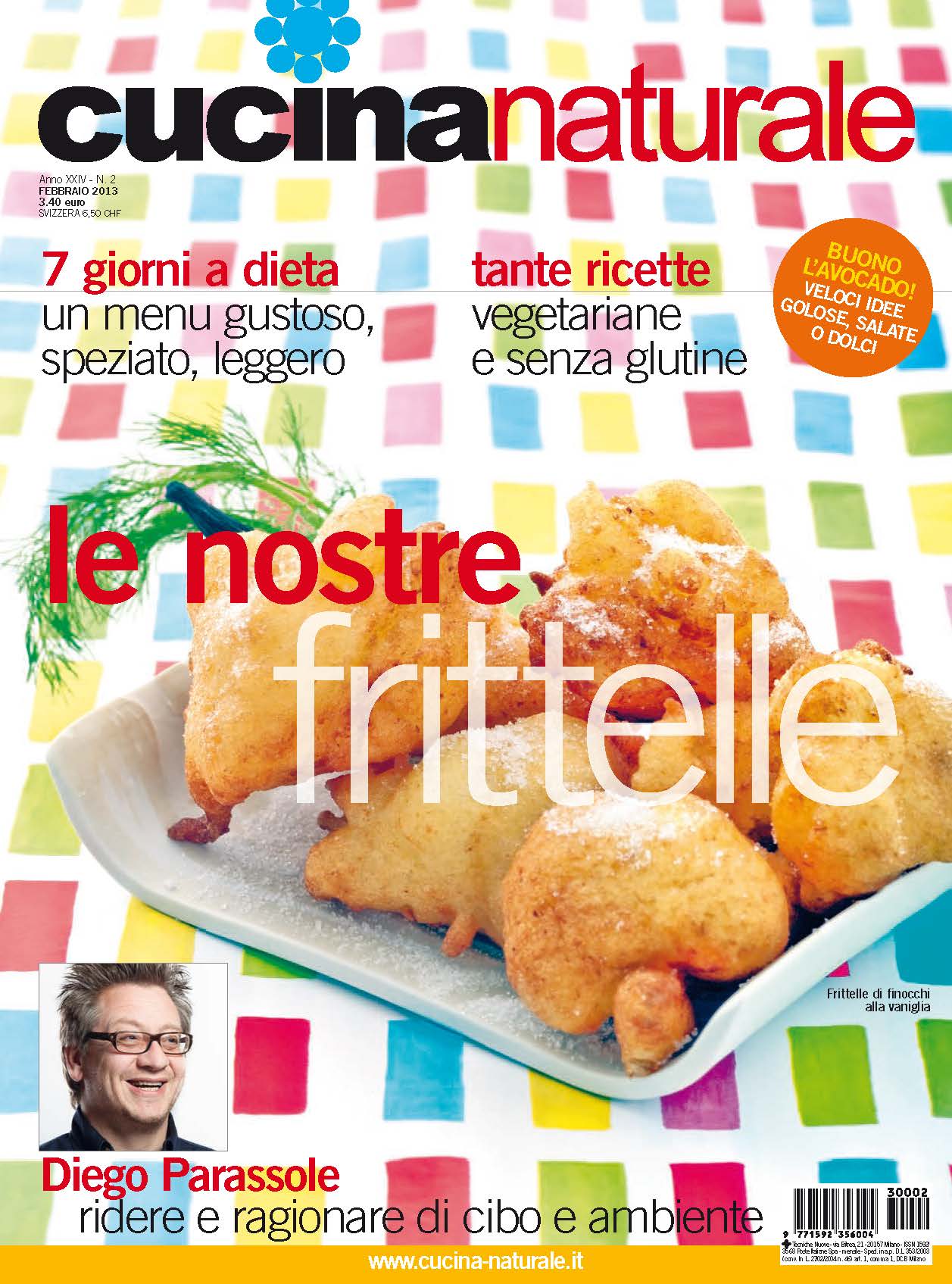 Non solo Carnevale nel numero di febbraio di Cucina Naturale. È vero, le frittelle occhieggiano dalla copertina, ma sono una dolce sorpresa: nascondono un cuore di ortaggi. E il numero è, come sempre, ricco di idee e ricette salutari. Partiamo con una facilissima pasta coi broccoli, proseguiamo con un saporito polpettone di legumi, mentre le Ricette di Stagione sono dedicate ai porri, eleganti e gustosi. Chi soffre di intolleranze avrà da scegliere tra i piatti della Cucina Sfiziosa, senza glutine e con formaggi di capra. L’avocado è il protagonista delle ricette della Cucina Veloce. Le ricette vegetariane sono tantissime, ma non vogliamo raccontarvi tutto. Solo un’ultima cosa: la Scuola di Cucina insegna a utilizzare gli addensanti e i gelificanti naturali.
