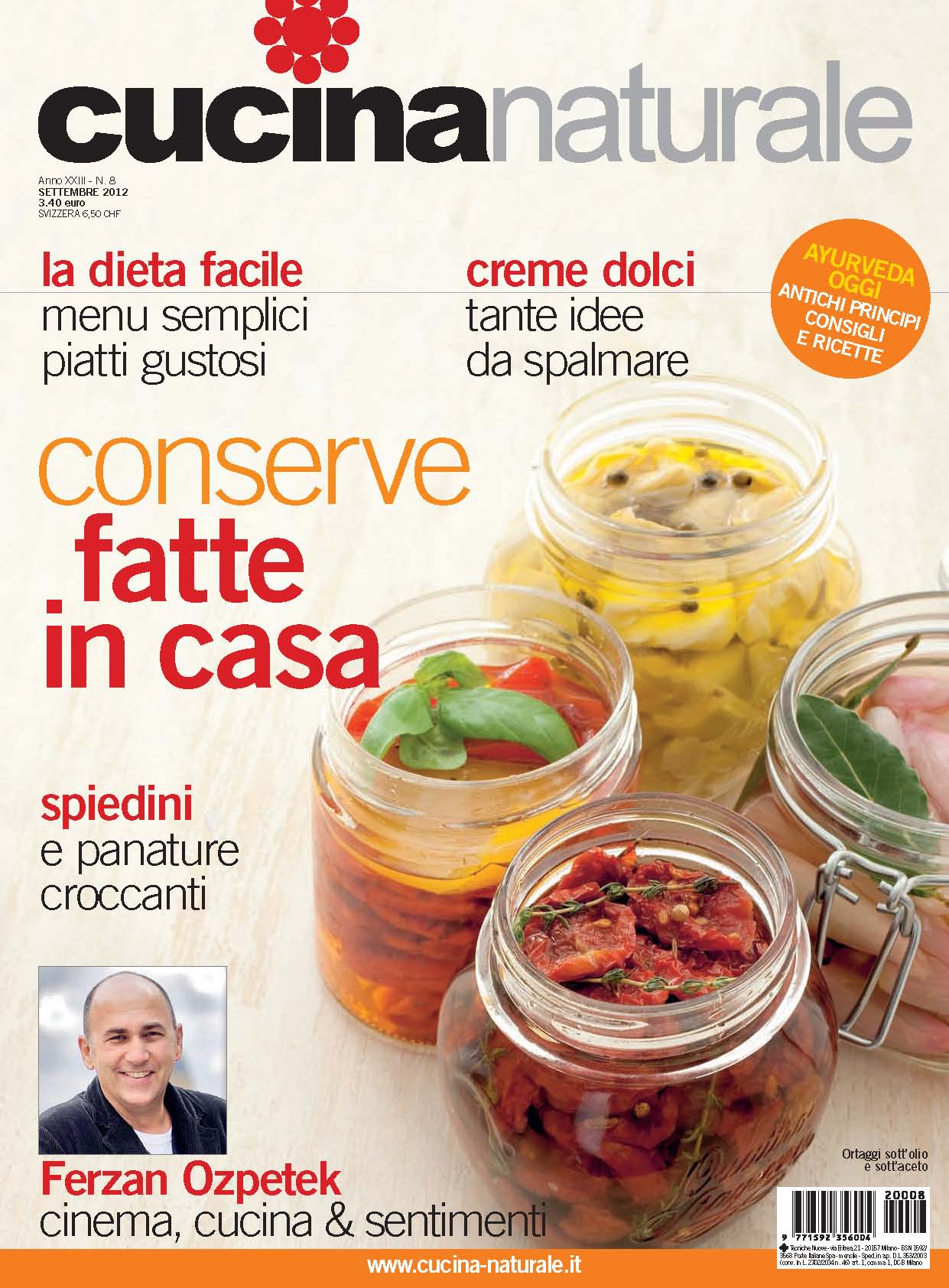 Settembre porta con sé un numero di Cucina naturale eccezionalmente ricco. Dieci sono i diversi autori delle ricette, dai temi più svariati: borlotti freschi e salse naturali; secondi impanati e golosi spiedini; i fichi in cucina e ricette tradizionali di ortaggi ripieni, ma vegan. Non poteva mancare un servizio sulle conserve vegetali fatte in casa, e, per restare in tema di “fai da te”, uno che propone 4 diverse creme al cacao da spalmare sul pane a merenda, per i bambini e i golosi… Poi, ricette etniche di peperoni e la nuova rubrica mensile, Ayurveda oggi. Se avete bisogno di perdere peso c’è una dieta settimanale all’insegna del “no stress”. Sciogliamo tutti i vostri dubbi sul colesterolo con un lungo articolo ricco di consigli, mentre è il malto il prodotto analizzato in questo numero. C’è poi un servizio sugli oli biologici per la pelle; l’Informabio ci racconta dei primi “vini biologici” mentre il vip del mese è il regista Ferzan Ozpetek.