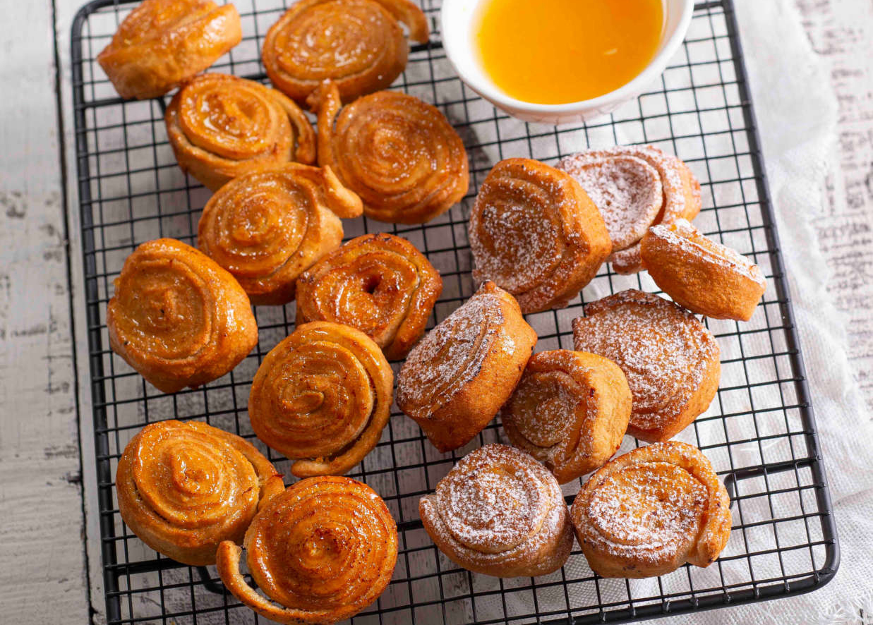 Ogni massaia emiliana o romagnola ha le sue preferenze: solo scorza di limone, solo di arancia, oppure un misto delle due come nella nostra ricetta. Infine, per inumidire leggermente lo zucchero da cospargere e per profumarlo ulteriormente, si aggiunge una spruzzata dell’agrume preferito, oppure un po’ del liquore già adottato per l’impasto. Non esagerate però: lo zucchero non deve sciogliersi ma solo perdere la consistenza “sabbiosa”, in modo da caramellare più facilmente durante la frittura ma senza disperdersi nell’olio.