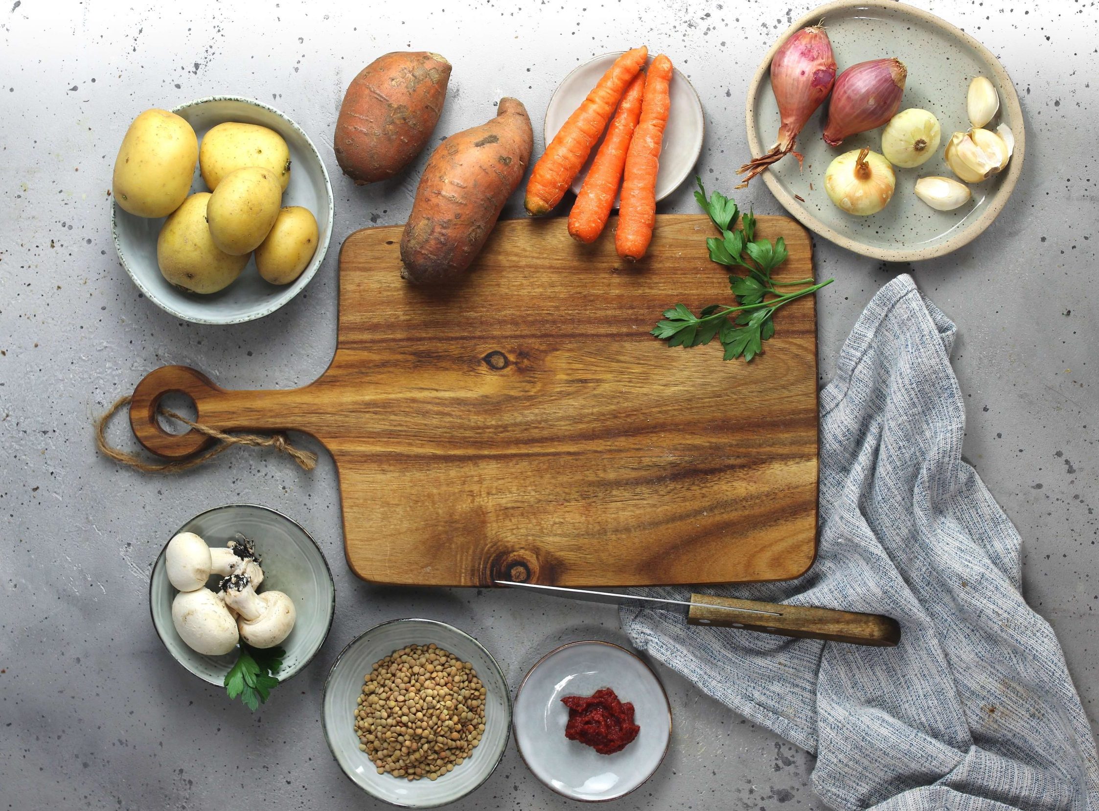 Un ottimo stufato parte indiscutibilmente da un profumato soffritto: oltre alle immancabili cipolle potete aggiungere lo scalogno che conferisce una complessità aromatica maggiore. E anche uno spicchio d'aglio se lo gradite. Ortaggi indispensabili per dare gusto e anche consistenza allo stufato sono carote e patate: scegliete patate a pasta gialla se volete che rimangano più intere, altrimenti optate per quelle a pasta bianca farinose che aiutano a rendere il piatto più denso e cremoso. Le patate dolci rosse (o batate) sono un’ottima aggiunta dal punto di vista sia gustativo che nutrizionale, così come rape, cavolfiori, cavolini di Bruxelles, peperoni e zucca.