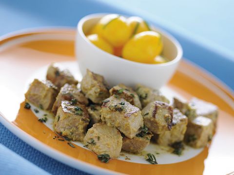 5 ricette con le patate novelle: Bocconcini di pesce al timo con patatine allo zafferano - Cascata di ortaggi fritti all'aglietto e al timo - Macedonia di asparagi, mandorle e patate novelle con salsa di tofu all'erba cipollina - Riso con cipollotti, asparagi, patate e ravanelli - Tortino di calamari e patate novelle con asparagi
