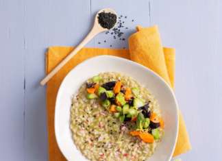 Ricetta da chefChicchi gourmet: risotto al pesto di aglio orsino con ortaggi e sesamo nero