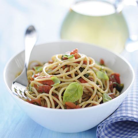 5 ricette con il basilico: Ravioli di ricotta, pomodori e basilico con salsa di pomodori - Fagottini di zucchine con pesce al basilico - Insalata d'orzo con fagiolini e carote al basilico - Spaghetti finocchietto e basilico - Pomodori affogati con tartine al basilico