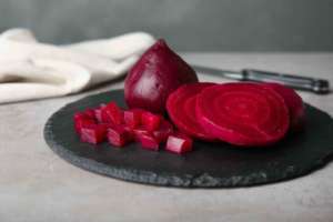 Per 2-4 uova: 350 g di barbabietole, 2 uova con il guscio bianco, 1 cucchiaio di aceto di mele, 1 cucchiaio di sale grosso, qualche elastico piatto.