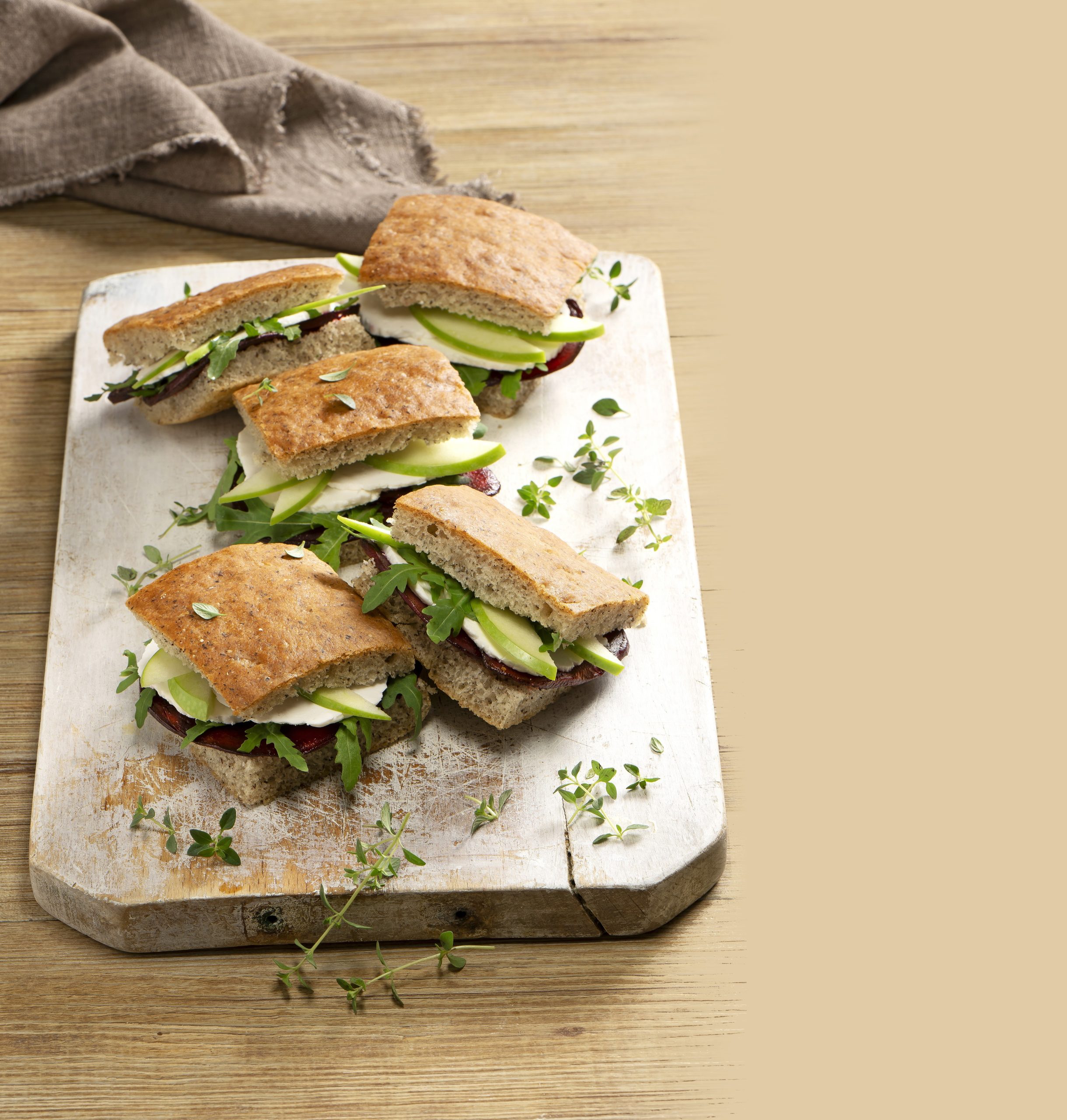 Focaccia saracena con barbabietola, mela verde e rucola
