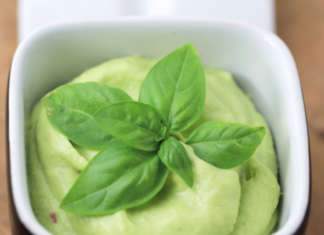 Crema di avocado, con cipolla rossa e basilico