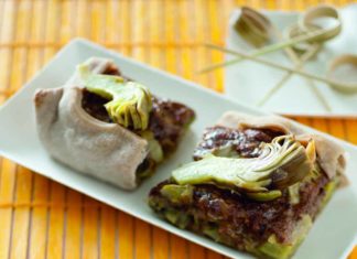 Torta salata al vino rosso con carciofi e cipollotti