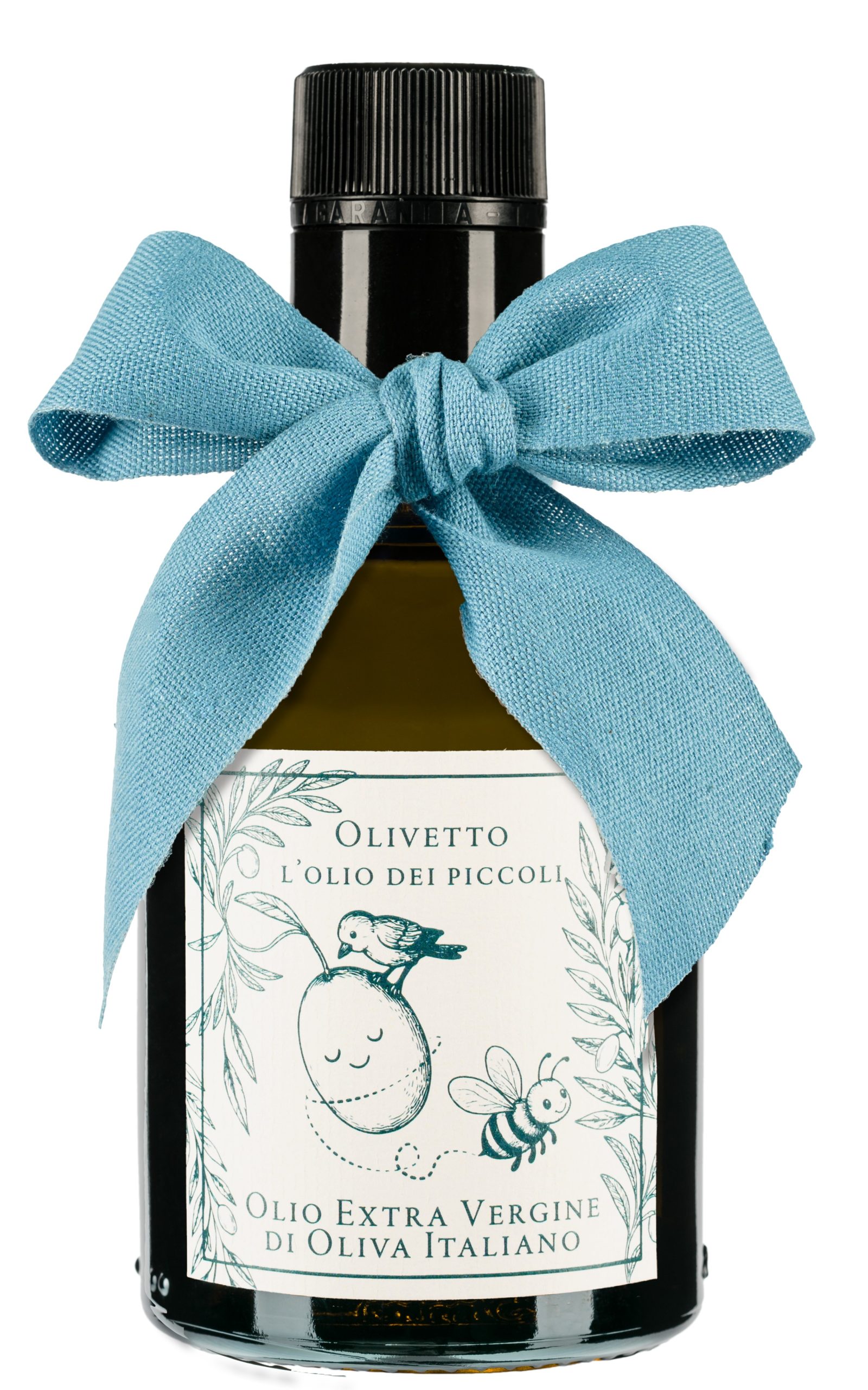 Un olio extra vergine nato in Umbria e pensato per i più piccoli: Olivetto è delicato, ricco di qualità e ideale per accompagnare i primi passi a tavola con gusto e salute