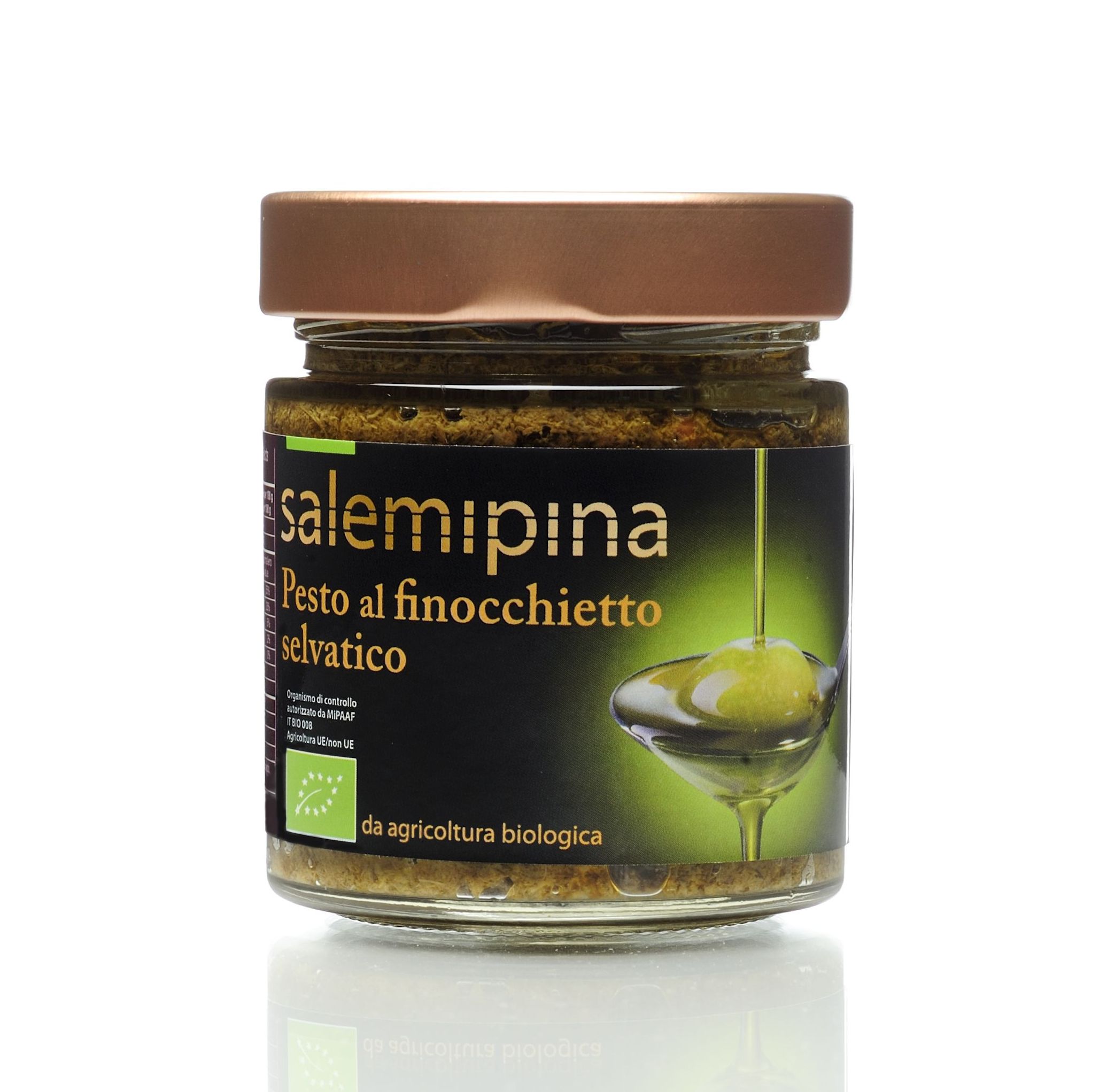 Il pesto al finocchietto selvatico da agricoltura Biologica dell'azienda Salemi Pina è confezionato esclusivamente con ingredienti di prima scelta: