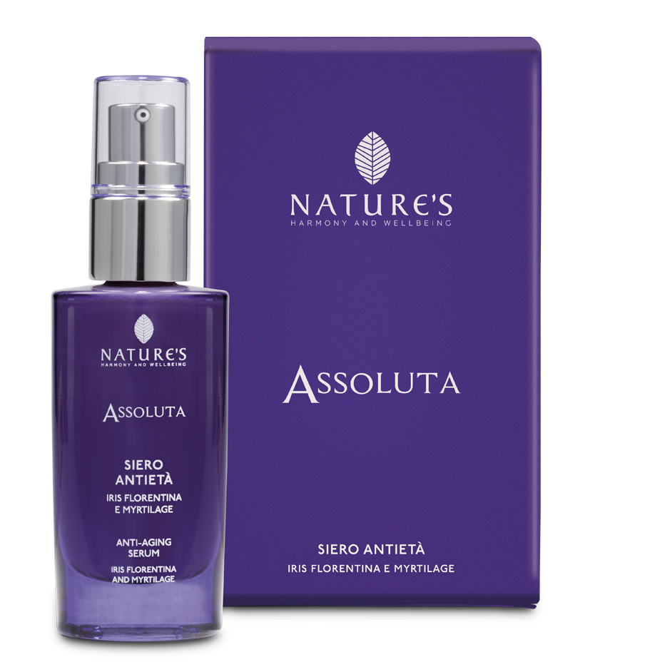 Cosa può fare una formulazione naturale per contrastare l'invecchiamento del viso? Tanto. Da Nature's hanno unito un frutto selvatico e un fiore nella nuova linea antiage Assoluta, individuando due principi attivi la cui azione combinata agisce nel cuore delle cellule cutanee aiutando a rivitalizzare e ridensificare i tessuti. Dalla bacca di mirtillo nero i laboratori hanno ottenuto un particolare concentrato, il Myrtilage, che sviluppa un'azione simile a quella del botulino; il fiore Iris fiorentina ha dato il suo corredo di isoflavoni, preziosi per la pelle.