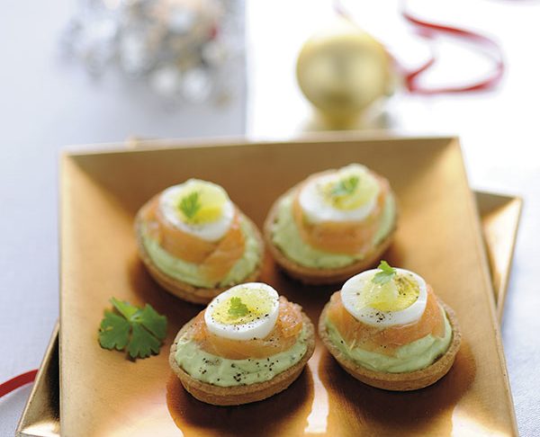 - Farcite, con l’aiuto di una tasca da pasticcere (o con un cucchiaino), i cestini di pasta brisée con abbondante crema di avocado, decorate con qualche strisciolina di salmone affumicato, il mezzo uovo di quaglia e un pezzetto di lime. Decorate con una leggera grattugiata di pepe e una foglia di prezzemolo.