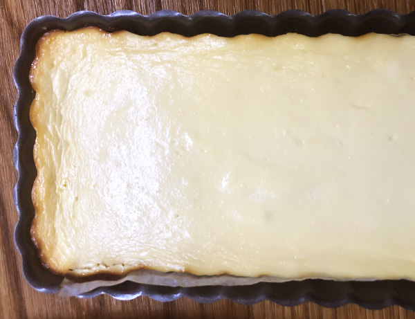 Sfornate quando la superficie della cheesecake è leggermente dorata. Fate raffreddare perchè si compatti. Lasciate in frigo qualche ora prima di guarnire con confettura di mirtilli.