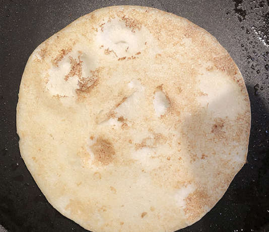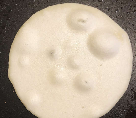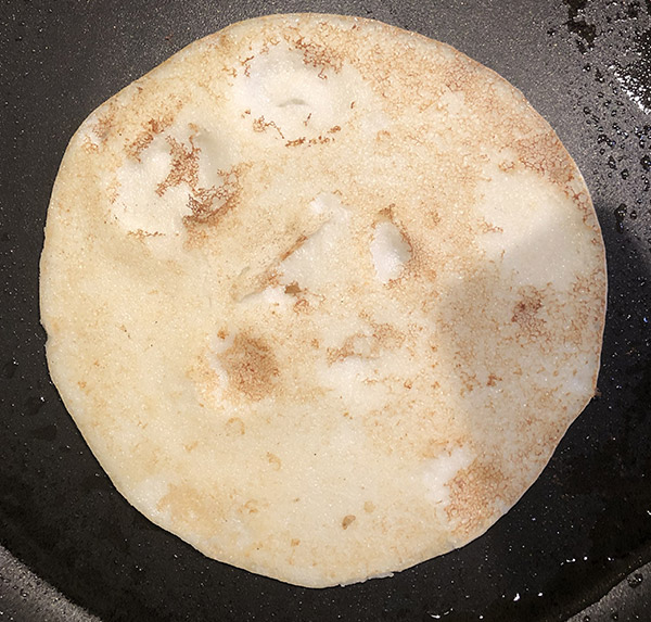 3. Quando la base è cotta, dorata e facilmente sollevabile, girate la crepe.