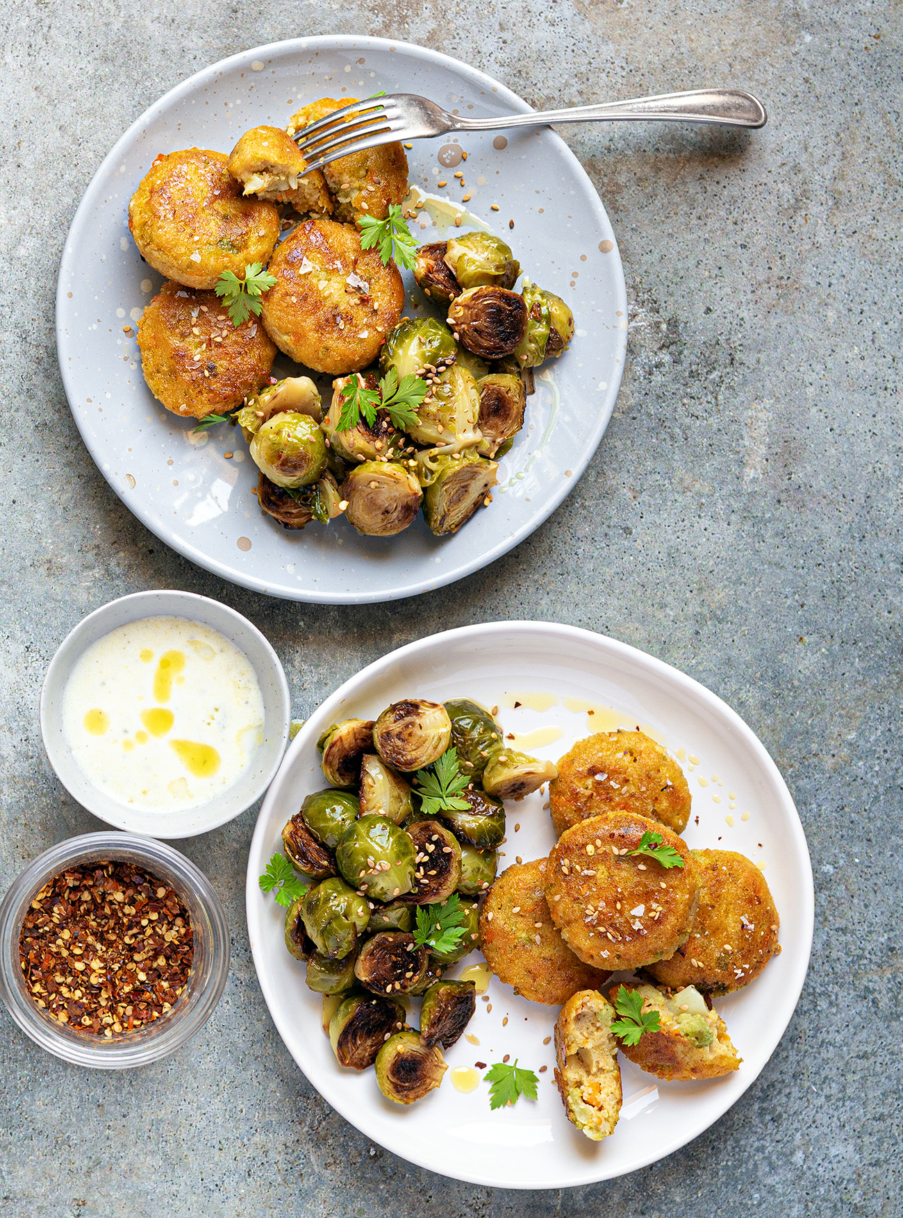 Oltre che con i cavoletti di Bruxelles, le crocchette si abbinano benissimo a una dadolata arrosto, o a un purè, di zucca o di patate dolci arancioni.