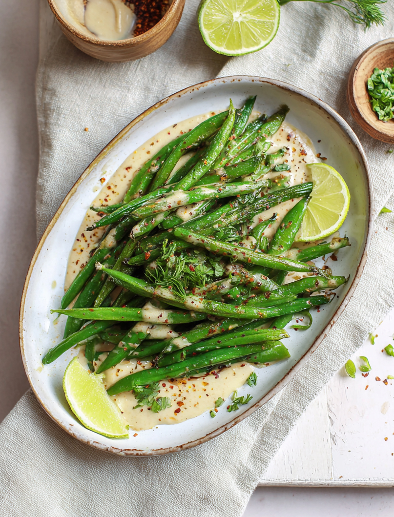 I fagiolini croccanti su tahini soffice sono un contorno facilissimo, 100% vegetale, senza glutine, senza latticini e senza uova e dal basso tasso glicemico (solo 160 calorie a porzione). Saporiti e light si abbinano a molti piatti e sono anche perfetti come aperitivo.