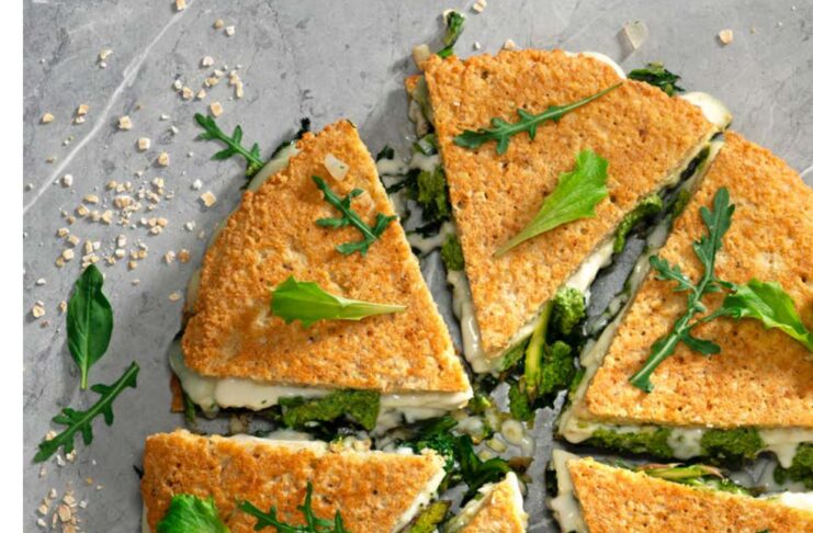 Pronti a rompere gli schemi? Questa focaccia proteica alle erbe di campo con asparagi e cipollotti è una ricetta vegetariana e senza glutine che non ha bisogno di lieviti e cereali, si cuoce rapidamente in padella ed è ricca di ingredienti naturalmente proteici come uova e mandorle. E le verdure di stagione le donano un fantastico mix di sapori.
