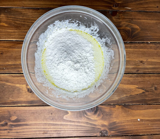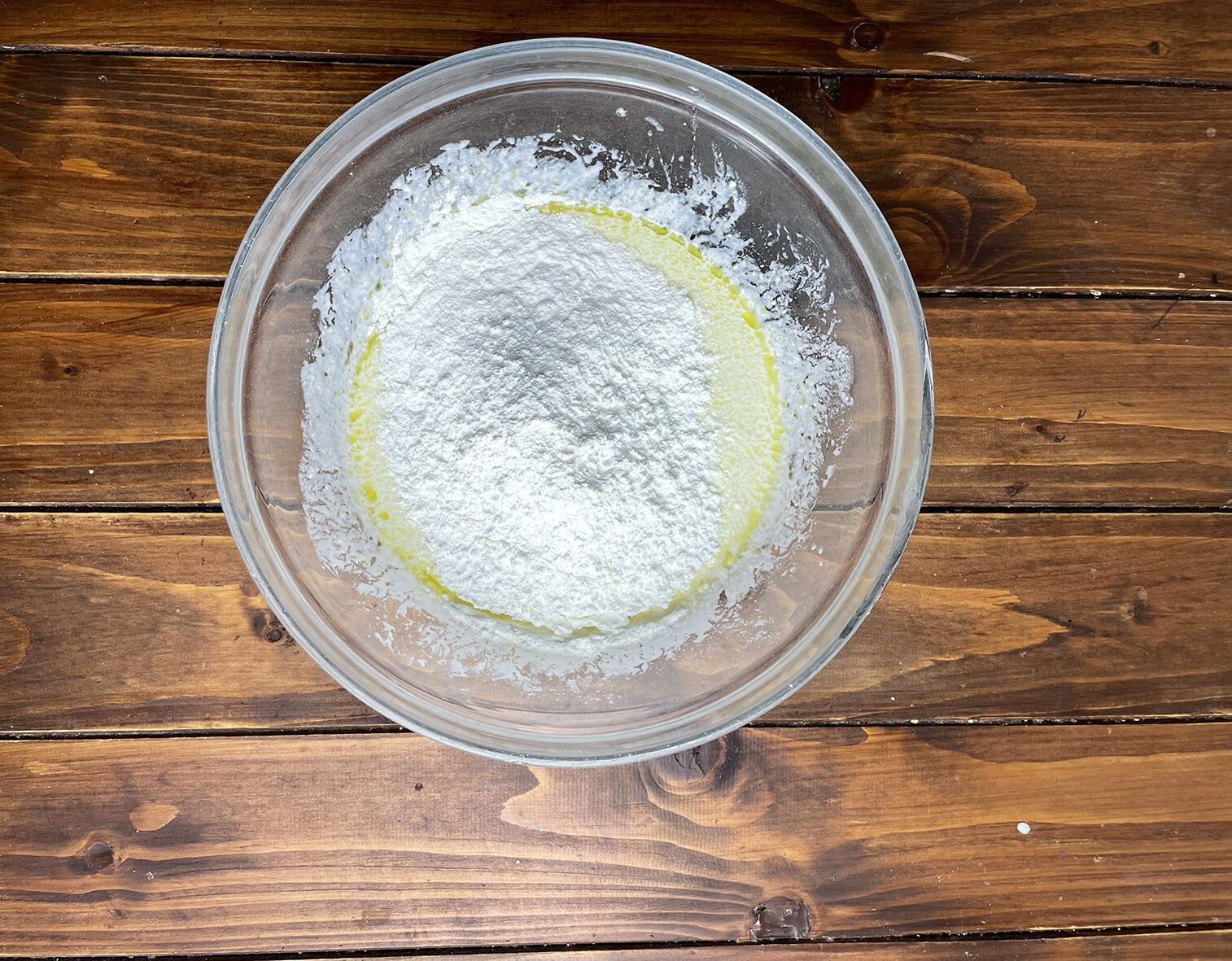 2. Setacciate a parte la farina di riso con l’amido di mais e il lievito. Incorporate il misto nella ciotola e continuate a lavorare fino a ottenere un impasto morbido e omogeneo