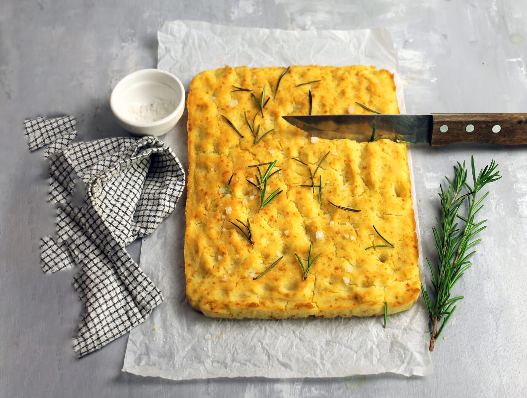 La focaccia veloce senza glutine e senza caseina è una ricetta vegetariana e senza uova che è buona per tutti (e anche facile da realizzare).