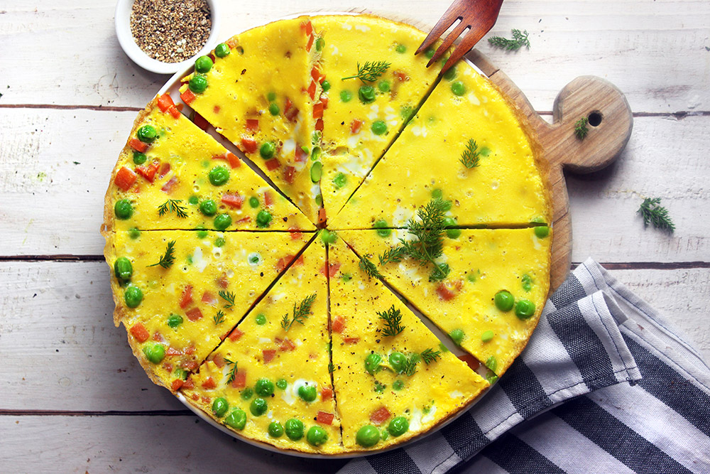 La frittata veloce con piselli e carote è un piatto goloso che si mangia come una pizza o una focaccia. Una ricetta zero spreco, che vi fa utilizzare gli avanzi: potete infatti utilizzare altre verdure, a patto di ridurle a tocchettini e rosolarle come spiegato nella ricetta.