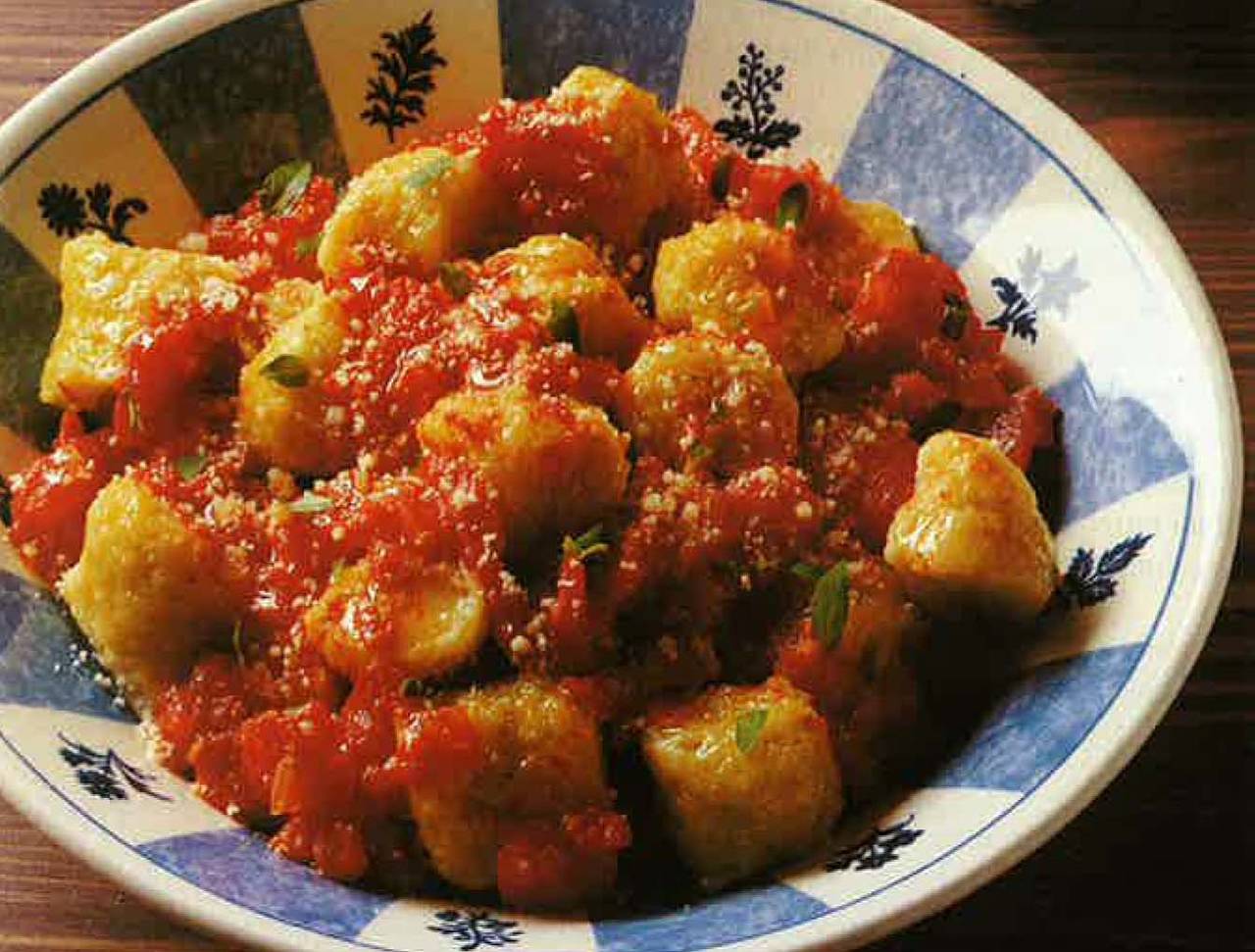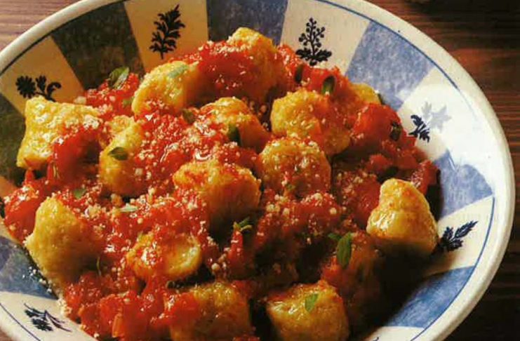 - Ritirate gli gnocchi con la schiumarola man mano che vengono a galla, trasferiteli in una zuppiera bollente e cospargeteli, a strati, con il sugo di pomodoro e il grana.