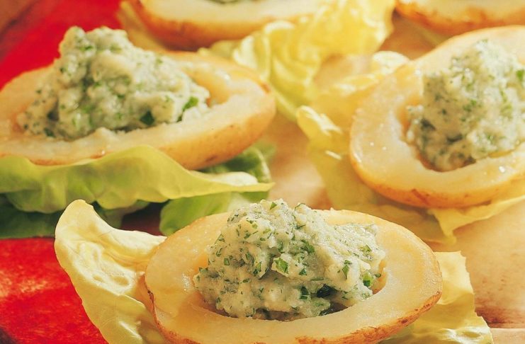 - Salate leggermente l'interno le patate e riempitele con la purea aromatica. Tenetele al caldo.