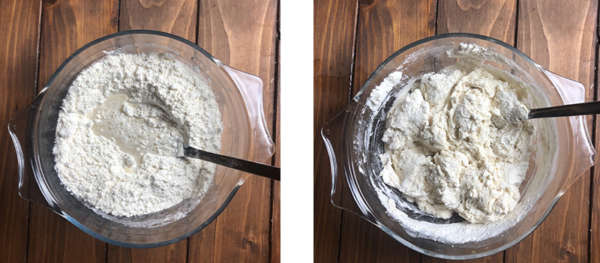 1. Unite le farine con il lievito secco e un pizzico di zucchero (se avete il lievito fresco scioglietelo nell'acqua). Mescolate. Aggiungete l'acqua a filo incorporando con la forchetta, poi con un cucchiaio di legno. Aggiungete il sale e due cucchiai di olio. Amalgamate brevemente e lasciate così il composto, idratato e stracciato. Coprite con pellicola oliata e lasciate riposare mezz'ora.