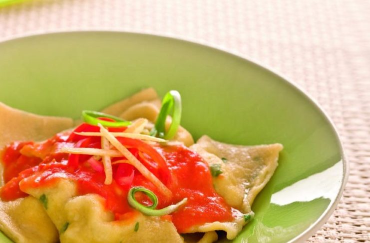 - Stendete la pasta in sfoglie sottili e ricavate da queste dei quadrati di 8 cm di lato. Distribuite la farcia al centro dei quadrati e ripiegateli a metà, sigillando bene i bordi.