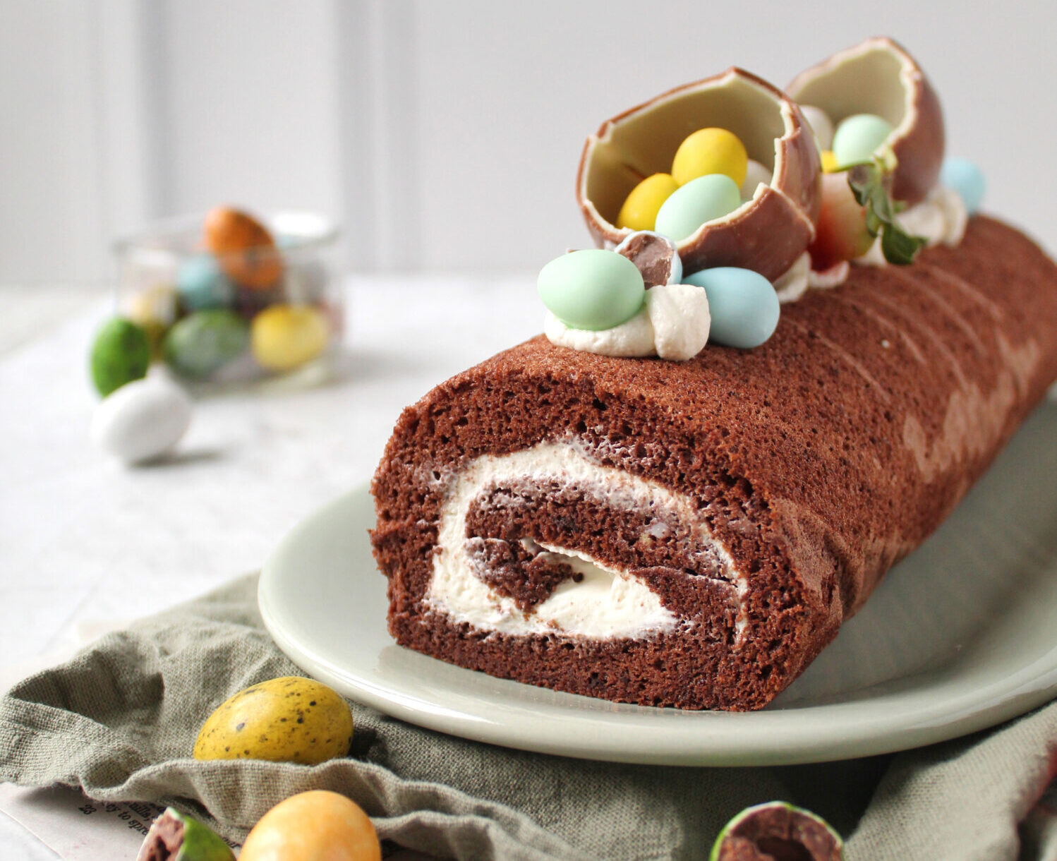 Il rotolo di Pasqua al cacao con mousse bianca è un dolce di Pasqua al cioccolato senza glutine nonché un classico vestito da festa.