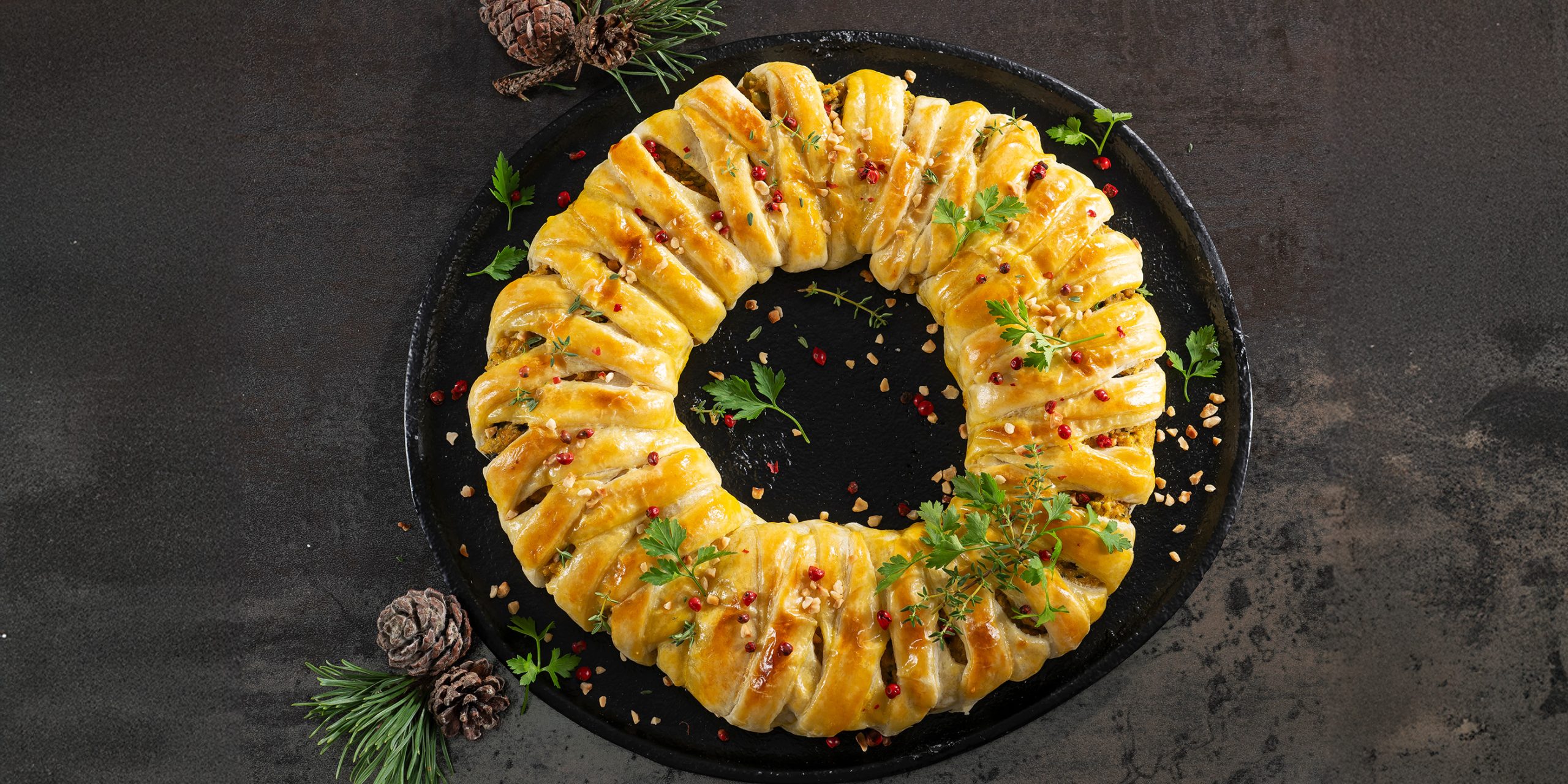 A Natale portare in tavola secondi piatti vegetariani può sembrare una sfida, ma in realtà è un modo più attuale e salutare che mai di condividere la festa. Questa sfoglia intrecciata con ripieno di ceci, olive e nocciole, soffice dentro e croccante fuori, ne è la dimostrazione.